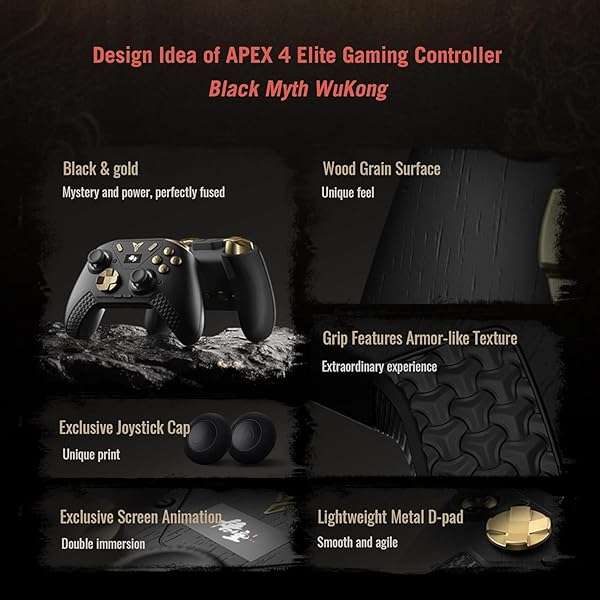 This isn’t just a high-performance controller; it’s a piece of art. Inspired by the highly anticipated “Black Myth: WuKong” game, the controller features: