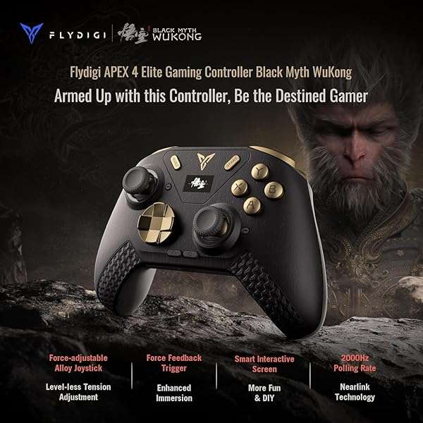 Command your destiny and elevate your gaming experience with the Apex 4 Elite, Flydigi’s most advanced controller, now in the stunning, limited-edition Black Myth WuKong design. Built for unparalleled performance and striking style, this controller is packed with precision-tuned features that give you a competitive edge across PC, Switch, Android, and iOS platforms.